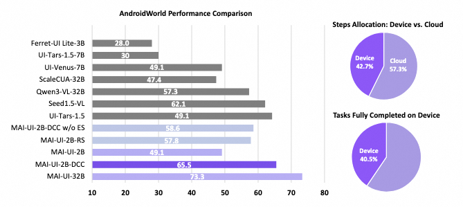 To evaluate MAI-UI’s practical capabilities, we adopt our MOBILEWORLD benchmark, a comprehensive benchmark designed to bridge this evaluation gap. MOBILEWORLD features over 200 realistic tasks spanning 15+ opensource applications across critical domains including e-commerce (Mall4Uni, mirroring Temu/Amazon), enterprise communication (Mattermost, mirroring Microsoft Teams/Slack), social media (Mastodon, mirroring X/Twitter), and daily productivity tools.