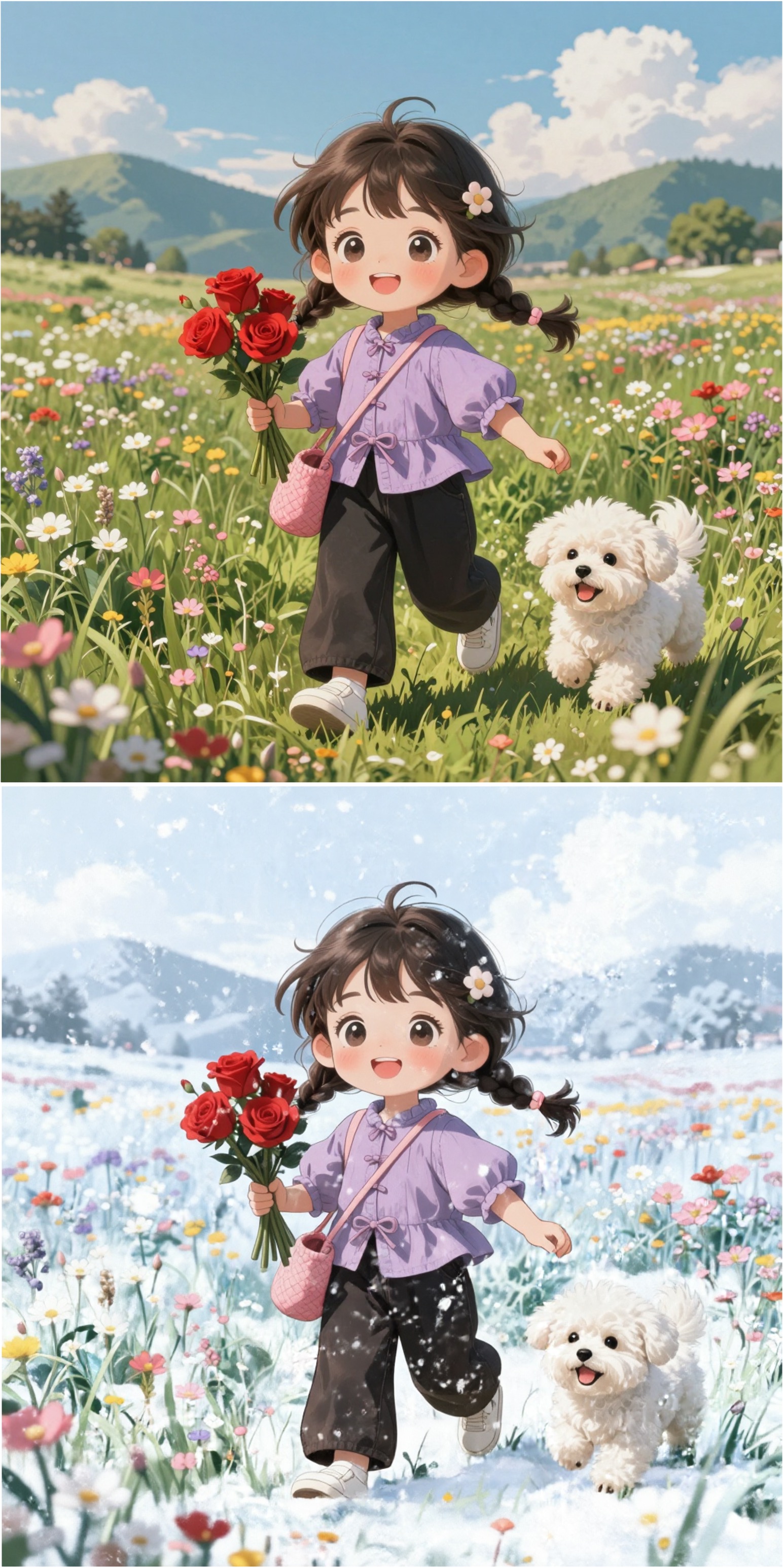 Z-Image-Edit can precisely execute complex instructions, such as simultaneously changing and brightening the background. It can also modify text at specified locations and maintain character consistency during significant image transformations, demonstrating fine-grained control over image elements.